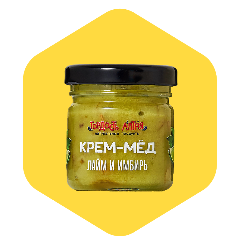 Состав: Натуральный алтайский мёд, кусочки лайма, кусочки имбиря.
